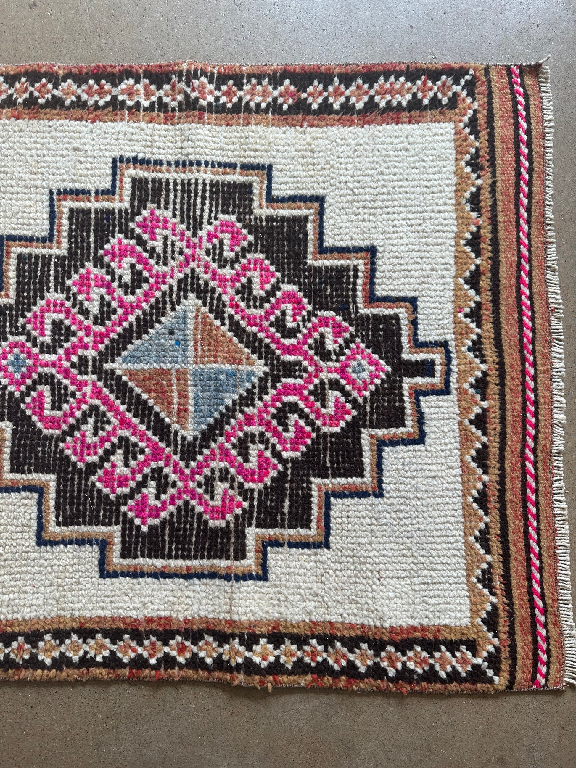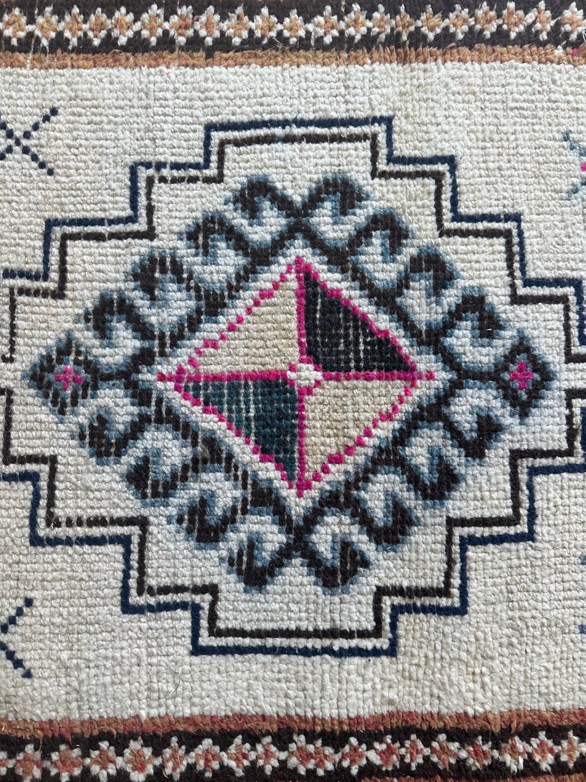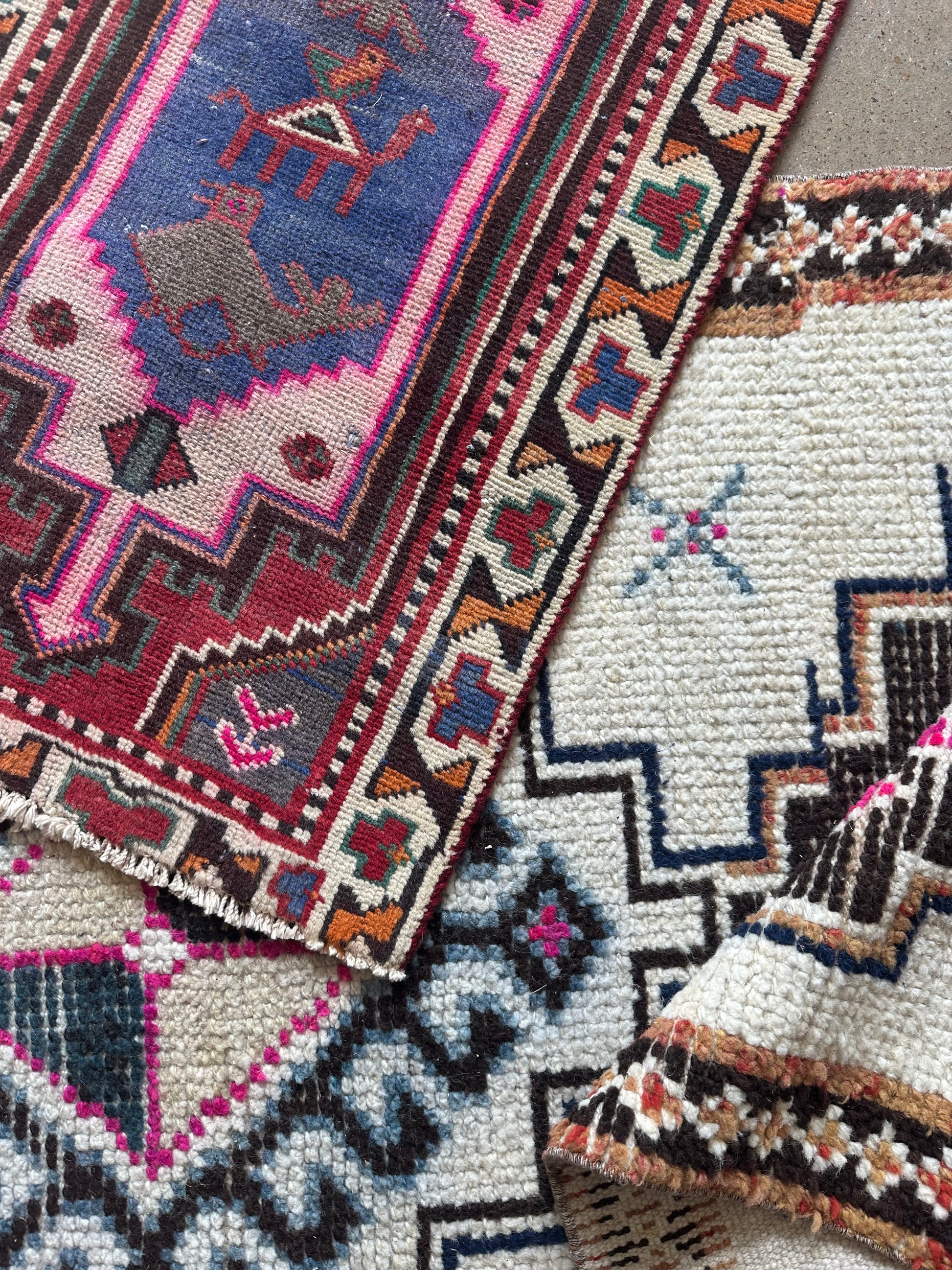 All vintage items are one of a kind, have various imperfections and charm which are characteristic signs of their vintage nature. We will do our best to note any repairs or details to take notice of as we have a no return policy. Contact us for additional photos or questions on any rug anytime.