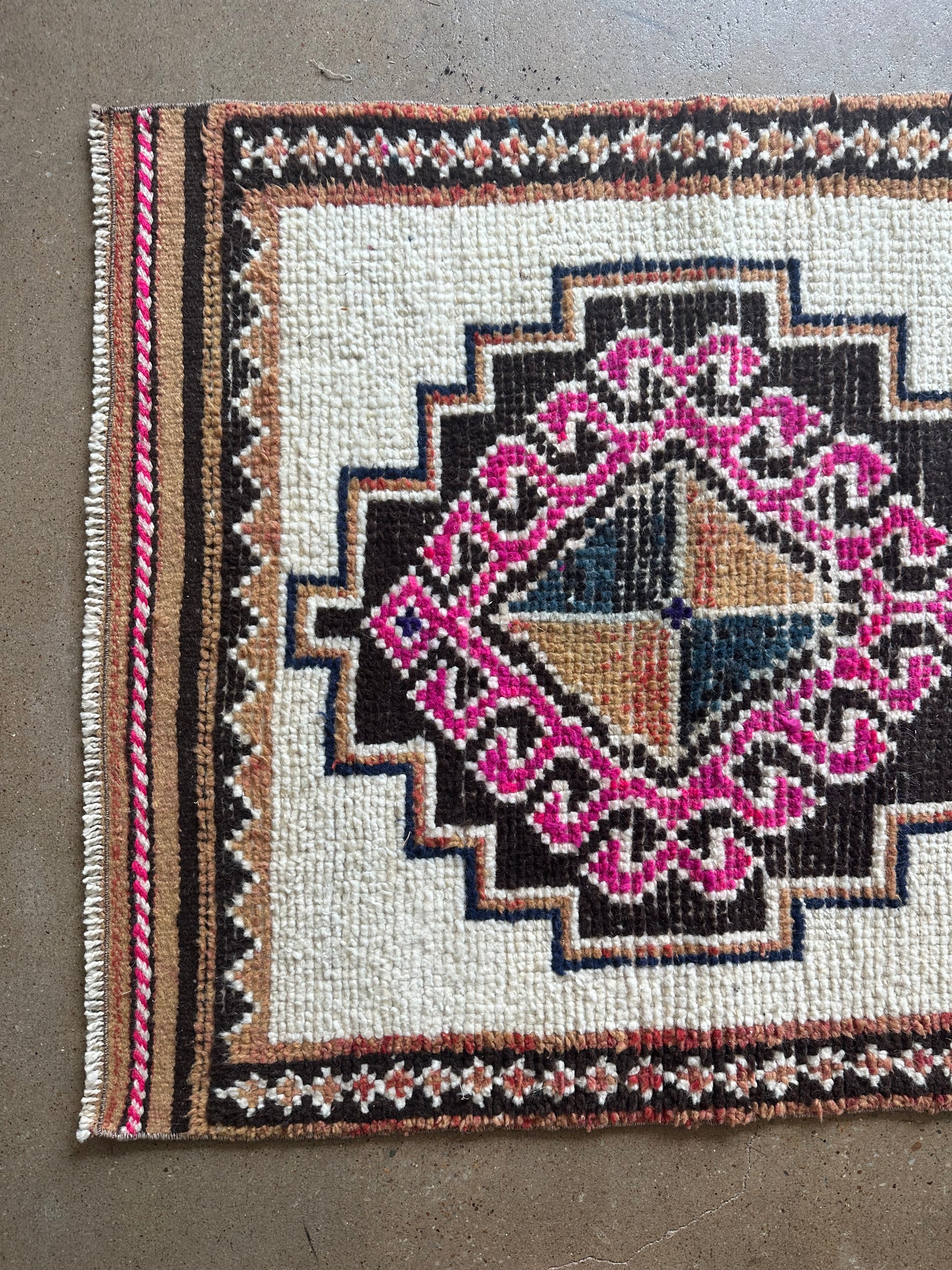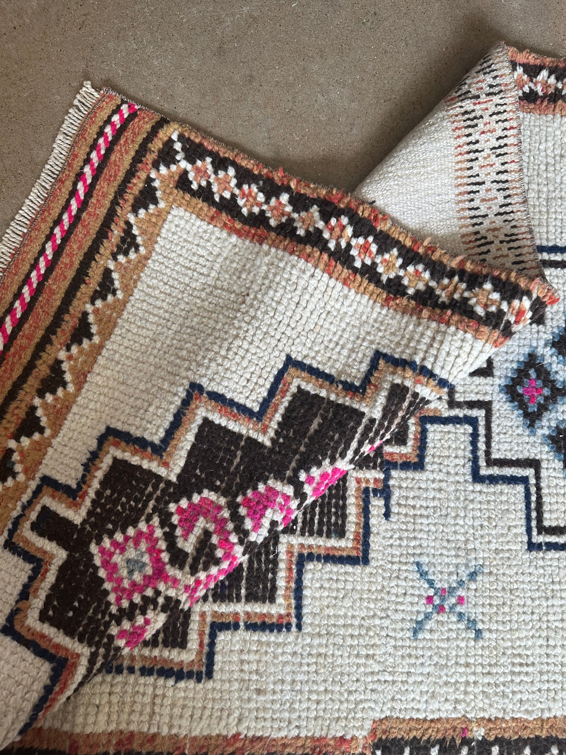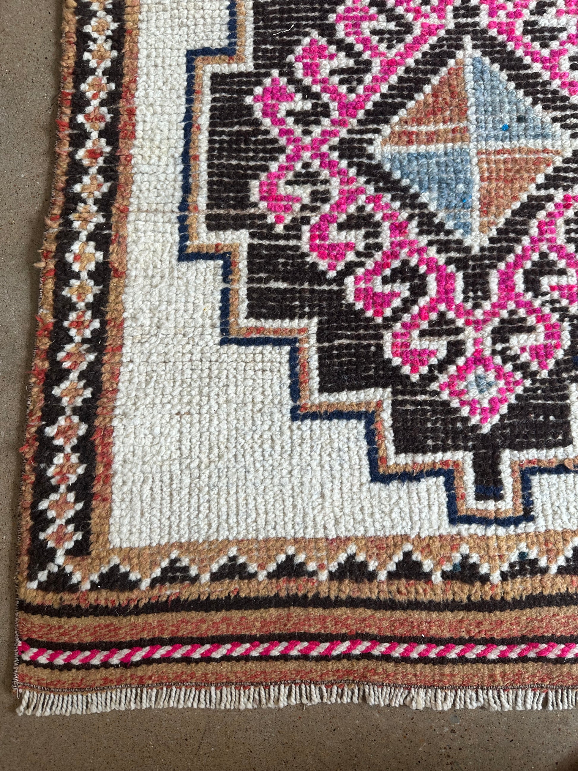 All vintage items are one of a kind, have various imperfections and charm which are characteristic signs of their vintage nature. We will do our best to note any repairs or details to take notice of as we have a no return policy. Contact us for additional photos or questions on any rug anytime.
