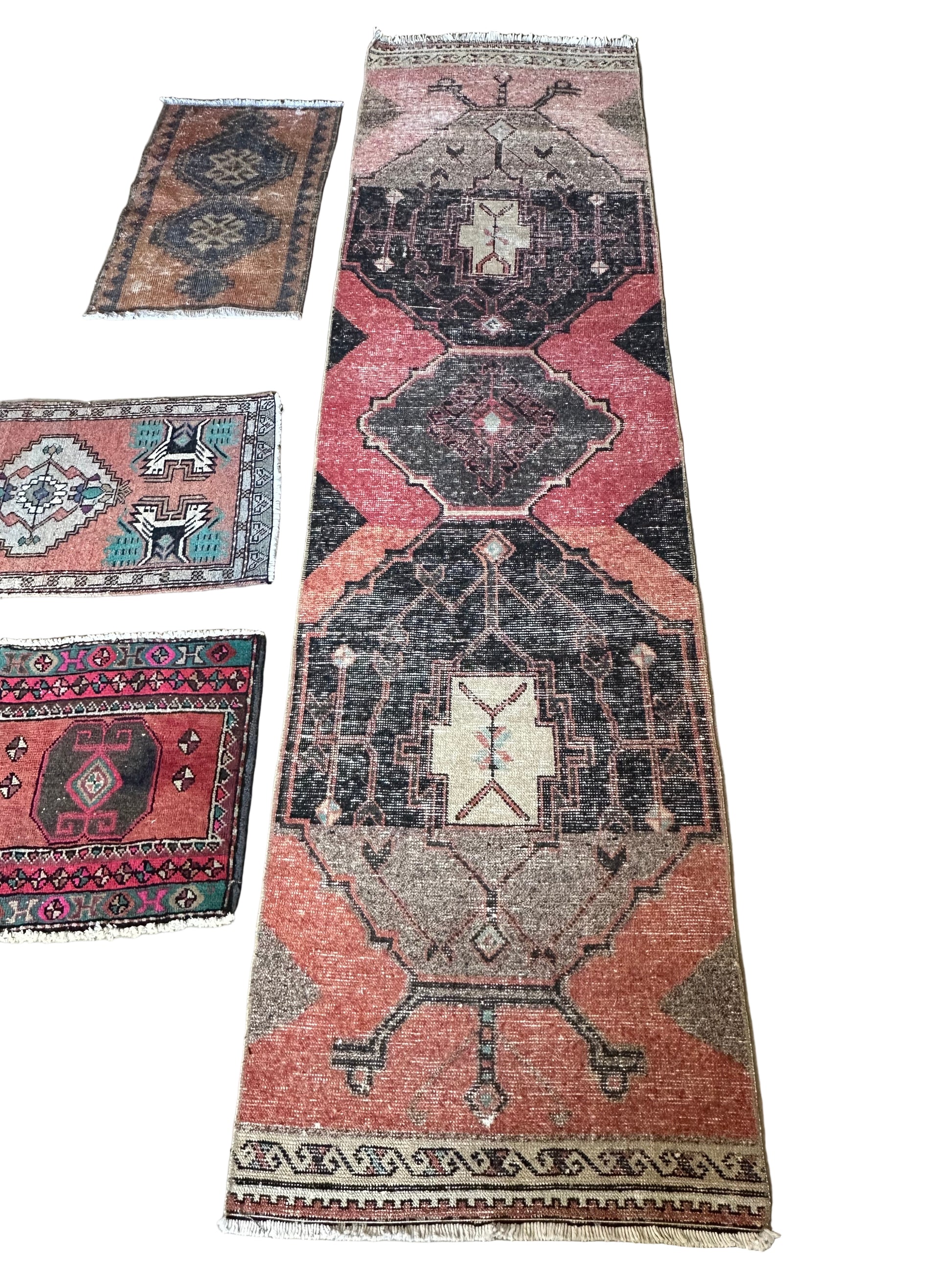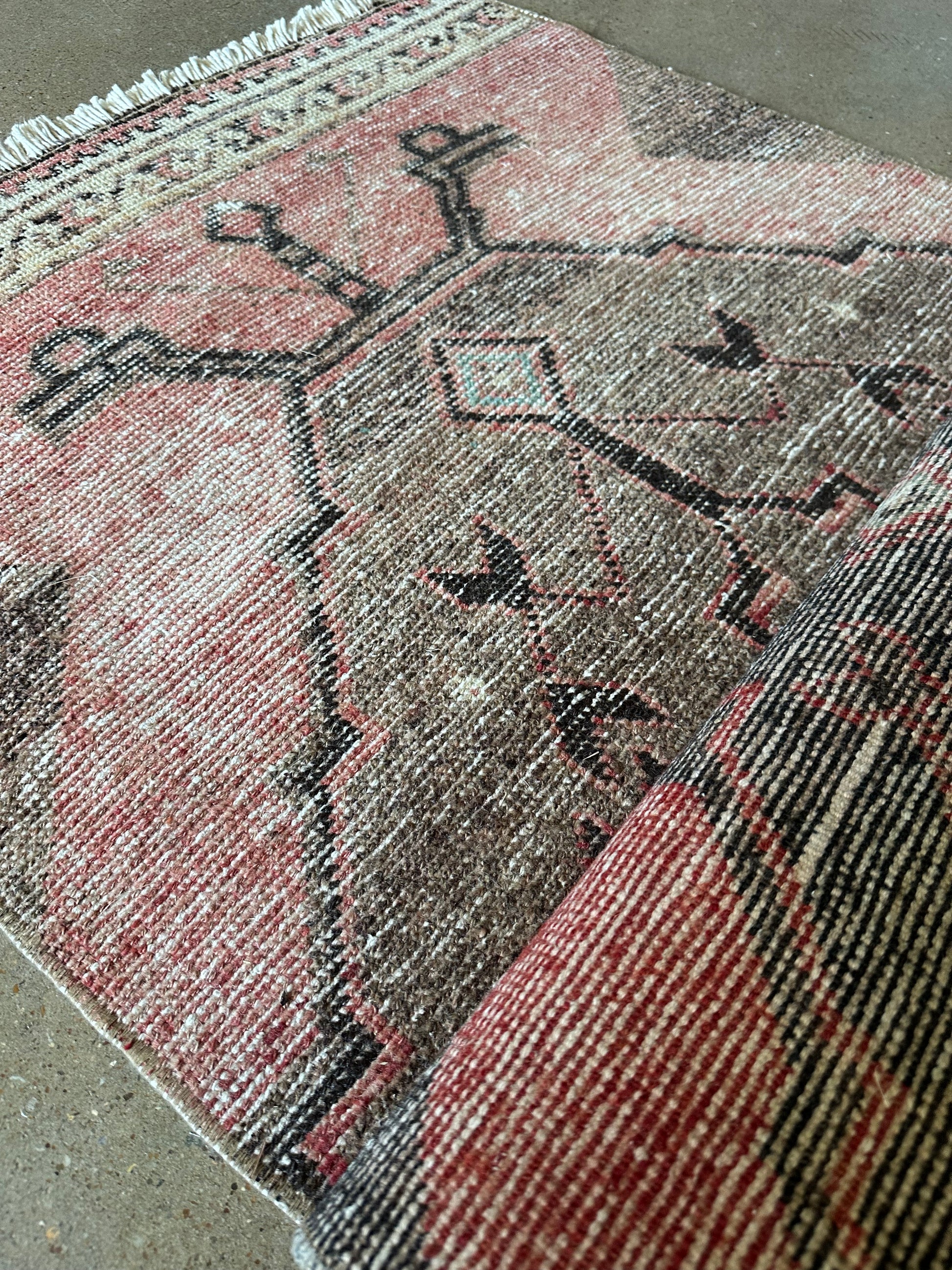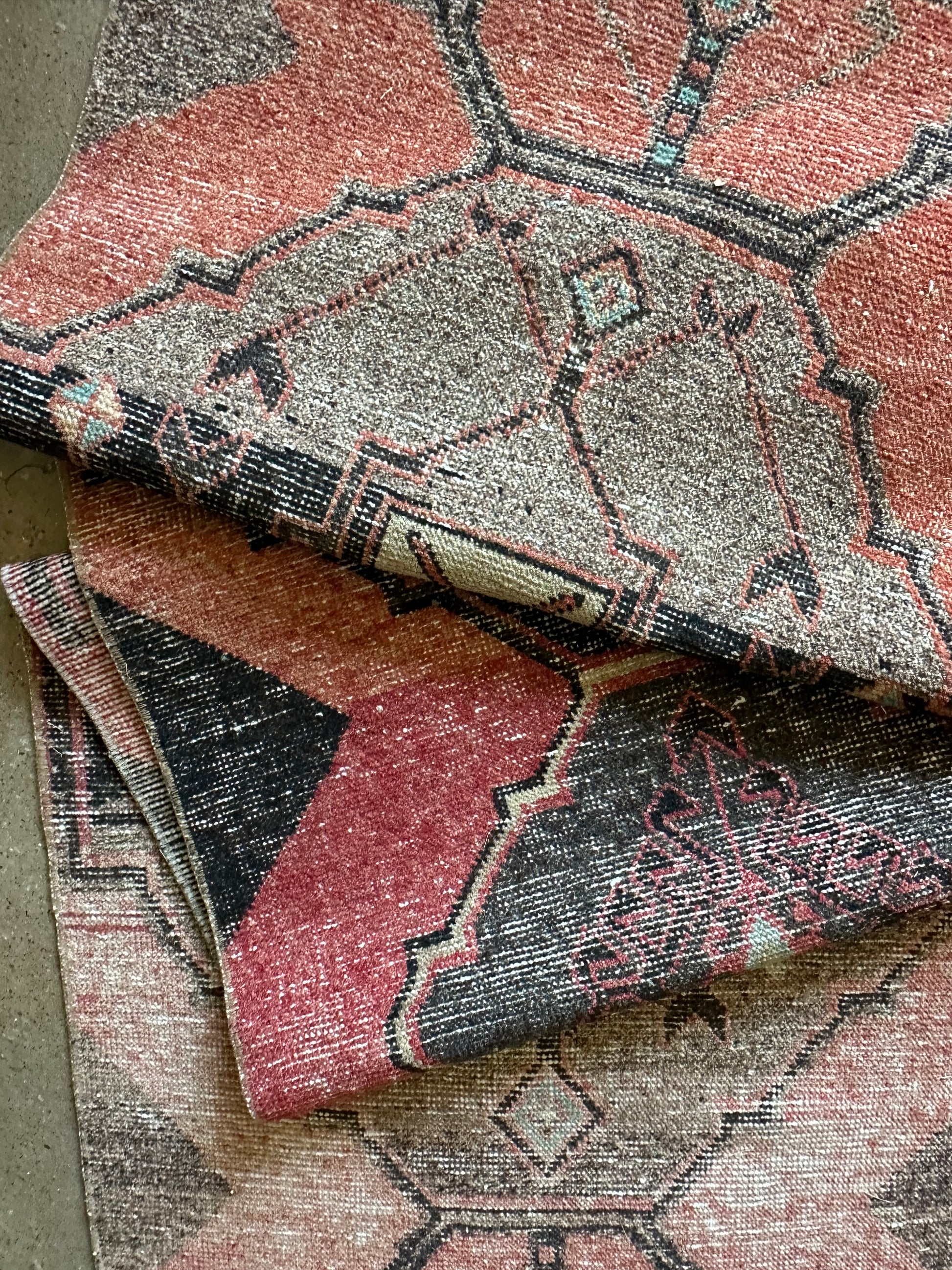 All vintage items are one of a kind, have various imperfections and charm which are characteristic signs of their vintage nature. We will do our best to note any repairs or details to take notice of as we have a no return policy. Contact us for additional photos or questions on any rug anytime.