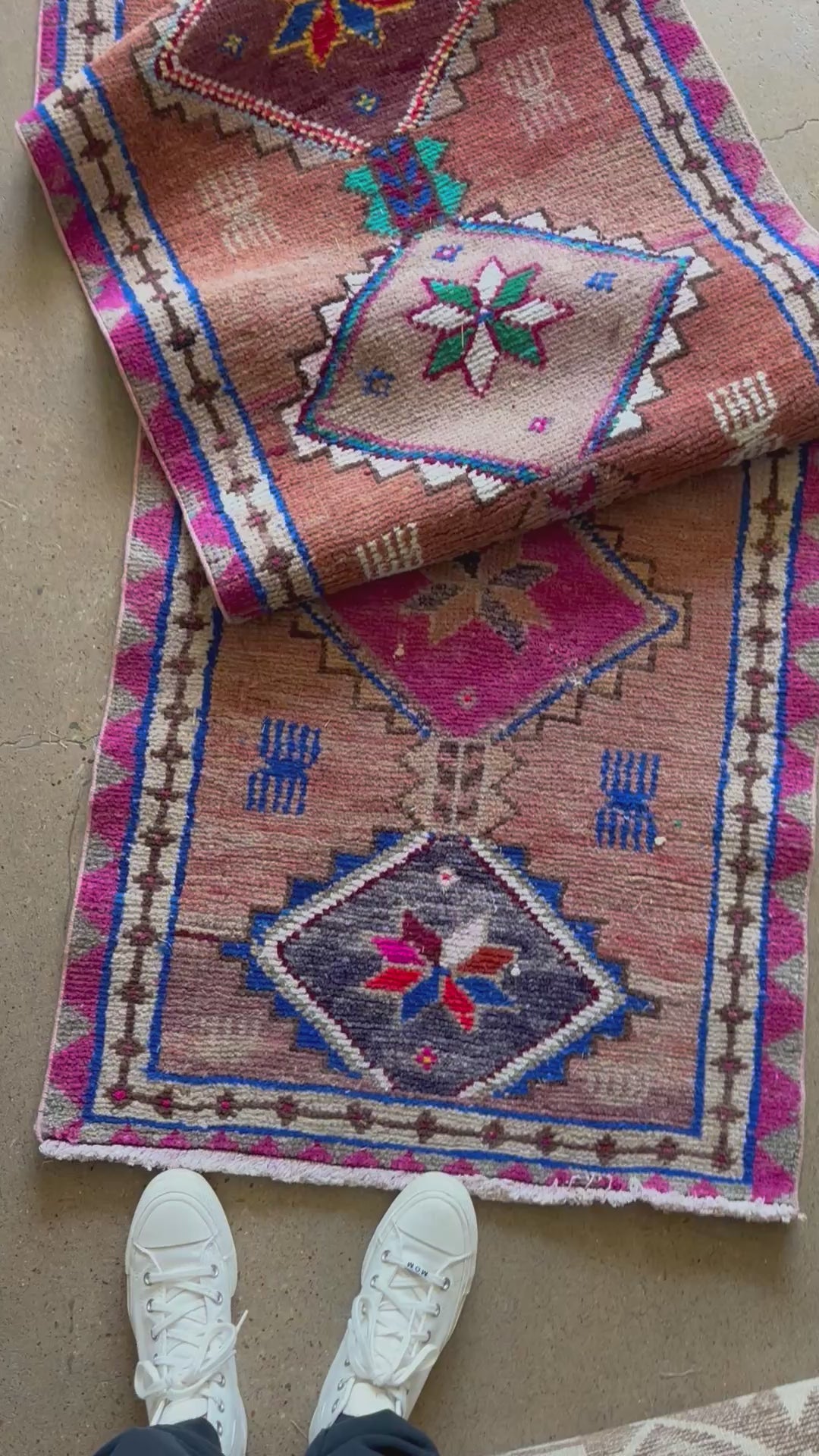 All vintage items are one of a kind, have various imperfections and charm which are characteristic signs of their vintage nature. We will do our best to note any repairs or details to take notice of as we have a no return policy. Contact us for additional photos or questions on any rug anytime.